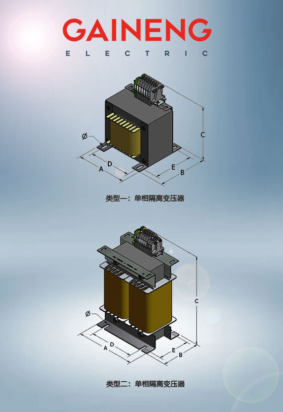 *產(chǎn)品尺寸僅供參考,可依據(jù)客戶需求設(shè)計生產(chǎn)不同規(guī)格型號的單相隔離變壓器。