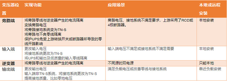 UPS系統(tǒng)配備了隔離變壓器的四個位置: