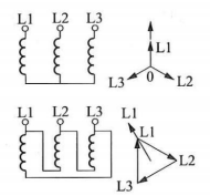 三相變壓器常用的繞組連接組有三角形、星形和曲折形。大寫字母Y、D、Z用于高壓繞組,中低壓繞組用同一字母的小寫形式Y、D、Z用YN(yn)或ZN(zn)用于中性點引出的星形或曲折連接。